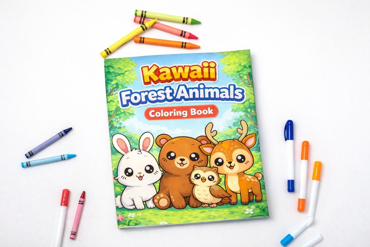 This forest animals coloring book features bunnies, foxes, bears, and more—all in a soft, friendly kawaii style.